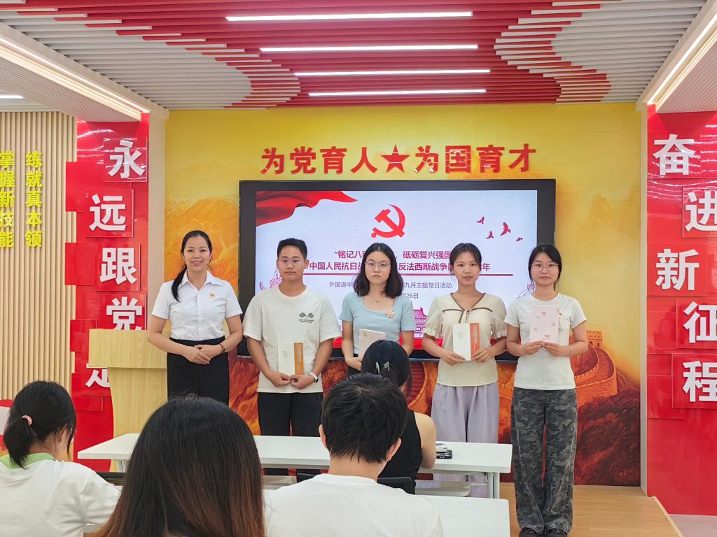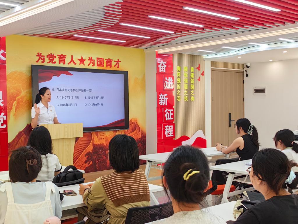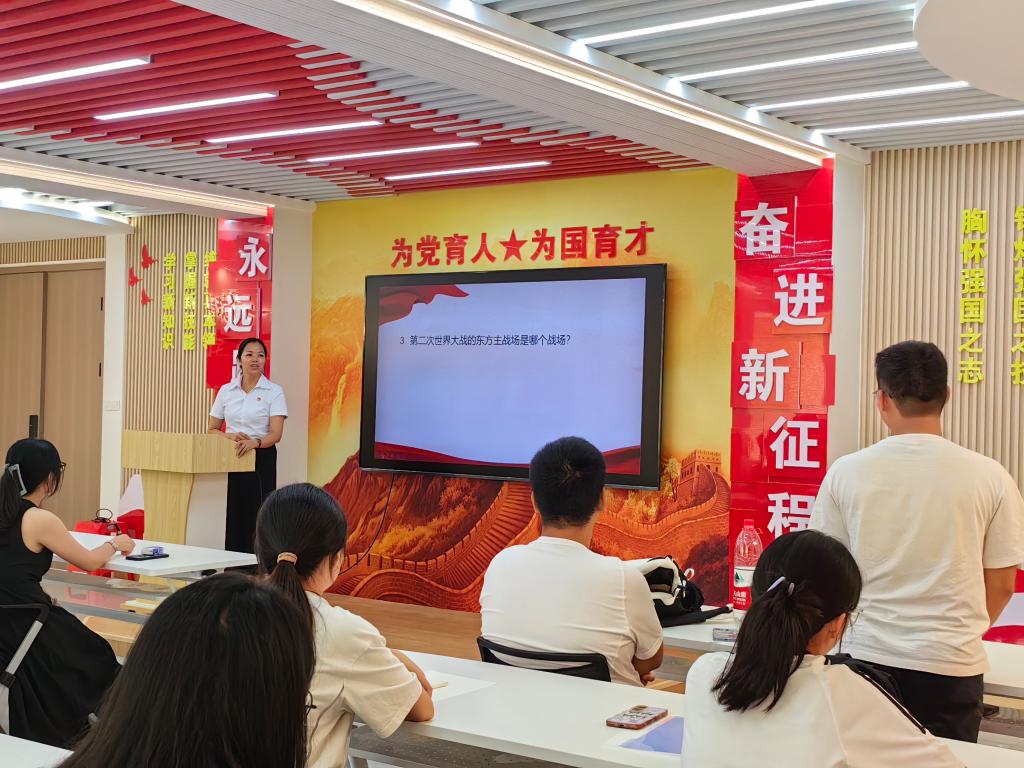 活动伊始,邓洁琼同志围绕“抗战精神”系统地阐释了其历史意义与时代价值,并带领同志们一同观看了《阵地》片段。随后进行的抗战知识竞答环节气氛热烈,同志们踊跃参与,展现出扎实的历史素养与高涨的学习热情。接下来是党员代表发言分享环节。黄洁夏同志强调要通过学懂历史、担当实干来传承抗战精神;王冰冰同志号召青年在学习历史、锤炼本领中勇担复兴使命;梁冰年同志聚焦斗争精神,主张将其转化为攻坚克难的实际行动;周震东同志则提出要将抗战精神融入爱国担当与学术追求,肩负时代重任。