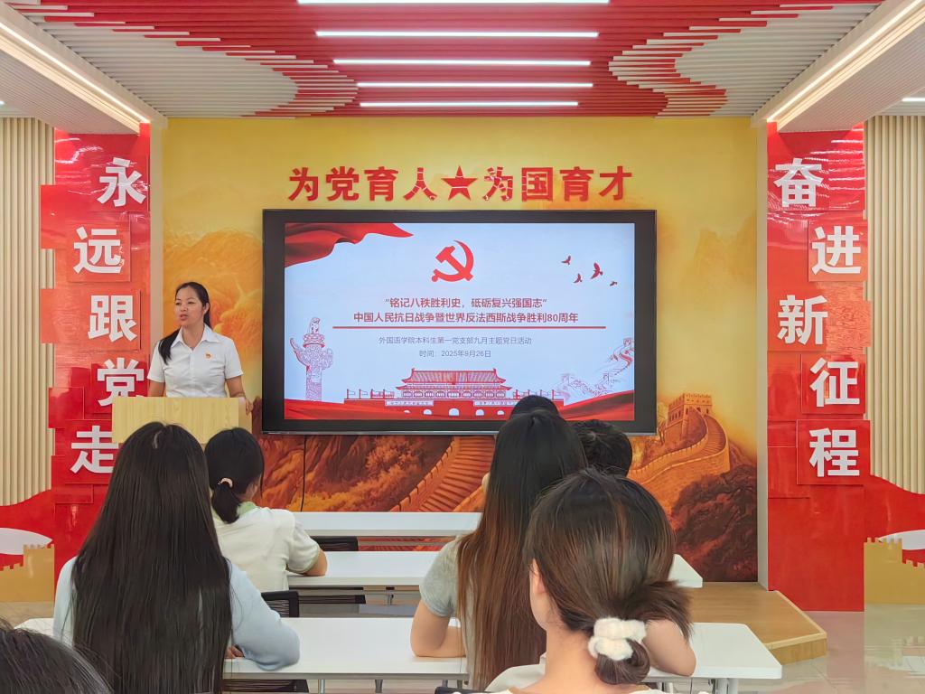 为深刻缅怀抗战历史,强化党员国家安全意识,增强维护国家安全的责任感与使命感,2025年9月26日,我院本科生第一党支部在4B思政大讲堂组织开展“中国人民抗日战争暨世界反法西斯战争胜利80周年”九月主题党日活动。活动由支部书记邓洁琼同志主持,支部27名党员及16名入党积极分子共同参与。