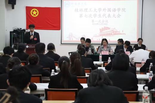 为凝聚青春奋进力量,推动学生组织创新发展,2024年11月14日晚,乐鱼网页版第七次学生代表大会在雁山校区15栋205教室隆重举行。乐鱼(中国)官方党委副书记邓洁琼老师、团委书记舒强老师、校学生会主席团成员受邀出席,63名学生代表齐聚一堂,共同参与这场年度盛会。会议由英语21-6班韦俊文同学主持。