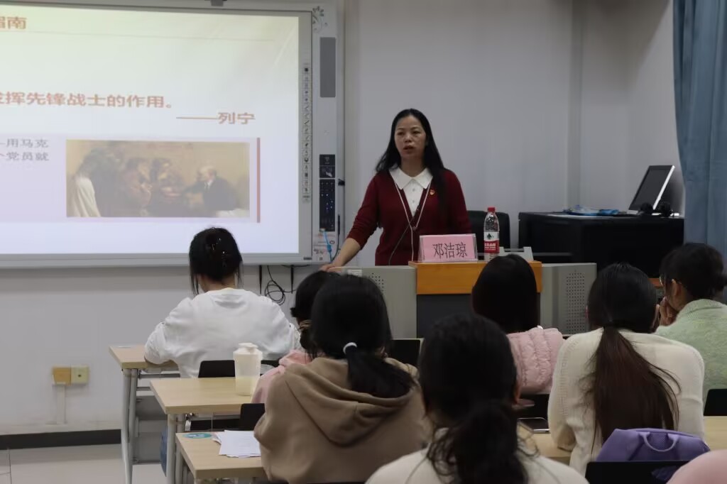 随后,邓洁琼副书记以《中国共产党的性质、宗旨和指导思想》为主题进行首场授课,系统阐释了党的核心理论与根本遵循。学员们专注听讲、认真记录,在深入浅出的讲解中进一步筑牢信仰根基、明确入党初心与责任担当。