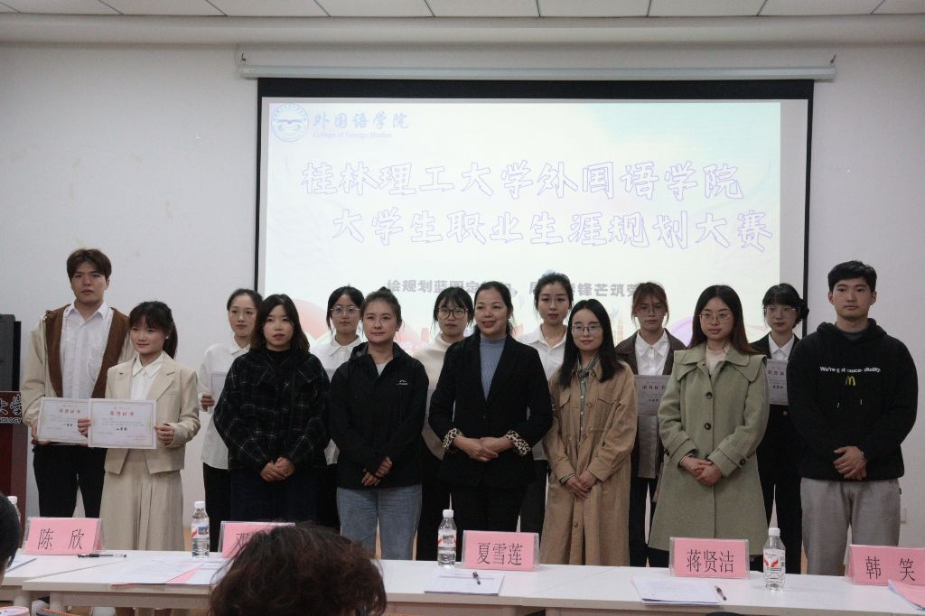 2025年11月17日,为引导外国语乐鱼(中国)官方学子树立清晰的成长观、就业观与择业观,科学规划学业与职业发展路径,我院2025年学生职业规划大赛决赛在雁山校区顺利举办。本次比赛邀请了外国语乐鱼(中国)官方党委副书记、纪委书记邓洁琼、学校大学生就业指导中心老师夏雪莲、25级辅导员韩笑、24级辅导员陈欣、23级辅导员曾燕担任评委。