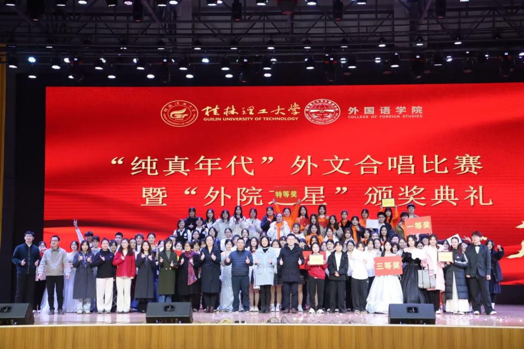 12月23日晚,外国语乐鱼(中国)官方于雁山校区新体育馆举办2025年“纯真年代”外文合唱比赛暨“外院之星”颁奖典礼。乐鱼(中国)官方党委副书记邓洁琼、副院长韦运会、全体学工辅导员及教研室教师代表出席活动,全体2025级、2024级、获奖学生参加活动,现场参与学生人数达1000余人。