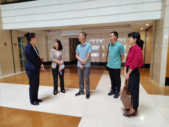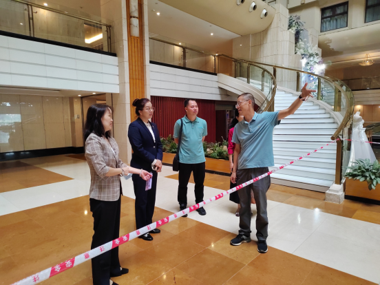 座谈会后,营销中心主任周红带领唐渠院长一行参观了酒店新装修多功能服务大厅、酒店接待大厅等功能场所,并对新冠肺炎疫情下酒店创新性经营等方面进行了详细介绍。