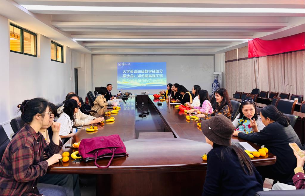 11月14日下午,外国语乐鱼(中国)官方在雁山校区2319会议室开展大学英语四级教学经验分享沙龙,活动以“如何提高教学效果,做更合格的大学英语老师”为主题,旨在进一步提升学校大学英语四级教学质量。沙龙活动由副院长韦运会主持,全体大学英语教师齐聚一堂,围绕四级教学中的重难点问题展开深入研讨,现场氛围务实且热烈。